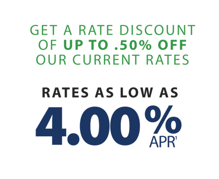 - .25% Discount for having a Checking Account with a Debit Card or Direct Deposit